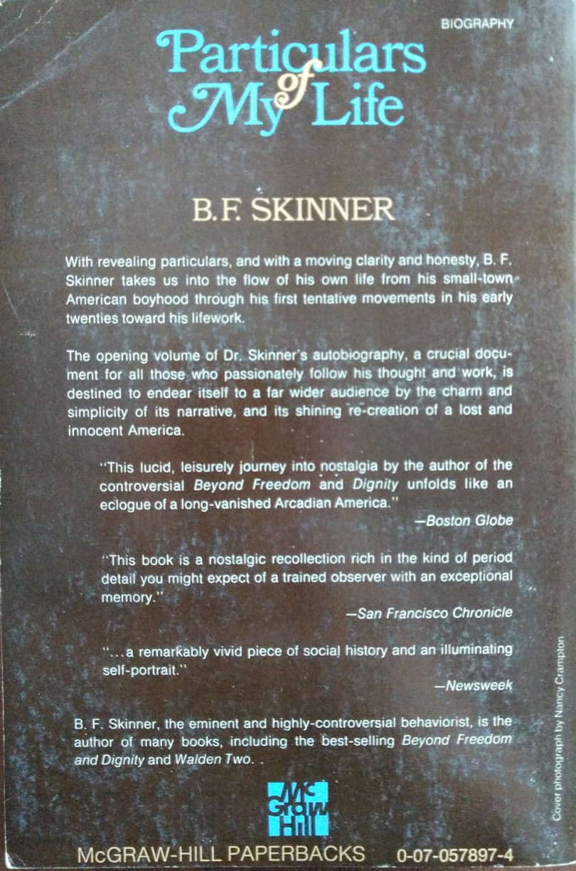 The opening volume of Dr. Skinner's autobiography, a crucial document for all those who passionately follow his thought and work, is destined to endear itself to a far wider audience by the charm and simplicity of its narrative, and its shining re-creation of a lost and innocent America.